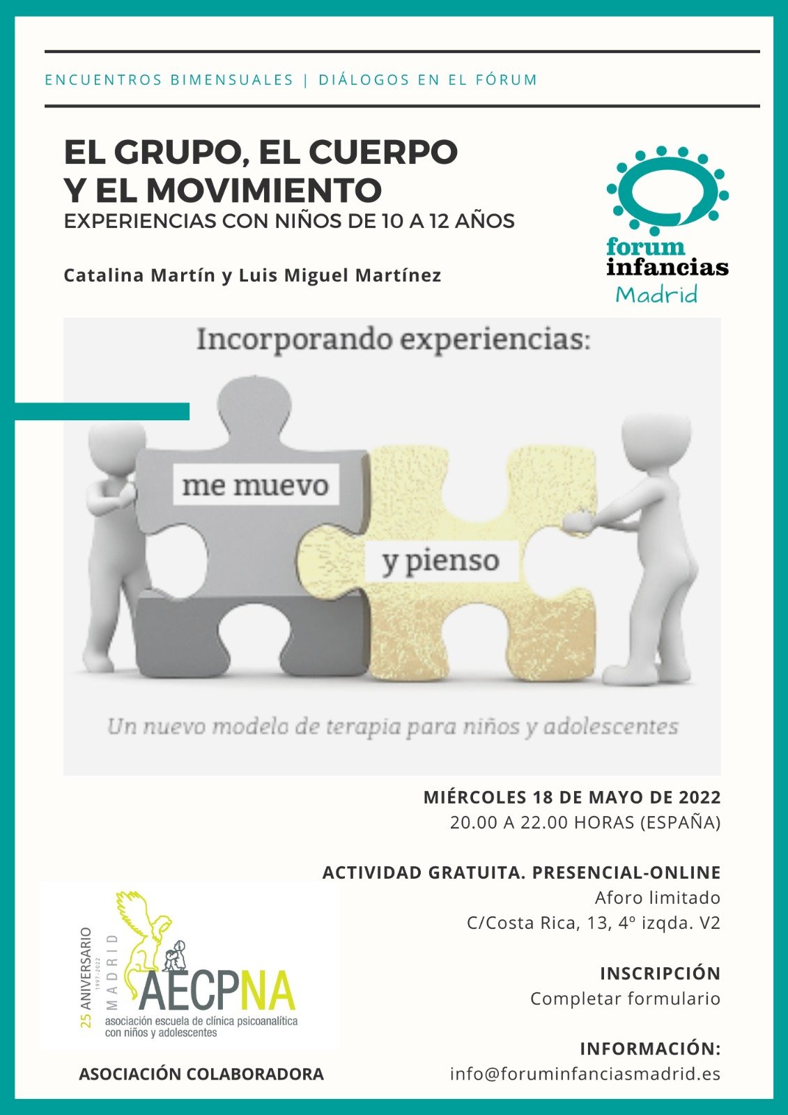 Este texto contiene las ponencias con las cuales Catalina Martín y Luis Martínez nos presentaron su libro Me muevo y pienso, donde en confluencia con los fundamentos del Fórum Infancias Madrid se trabaja a partir de la importancia de adjudicar a cada niño y adolescente su lugar de pleno sujeto en la construcción de su proyecto vital. Ambos nos cuentan como lo materializan a través de una propuesta terapéutica original. En esta oportunidad Amparo Bastos, Ismael Anaya y Edith Bokler comentan el texto.